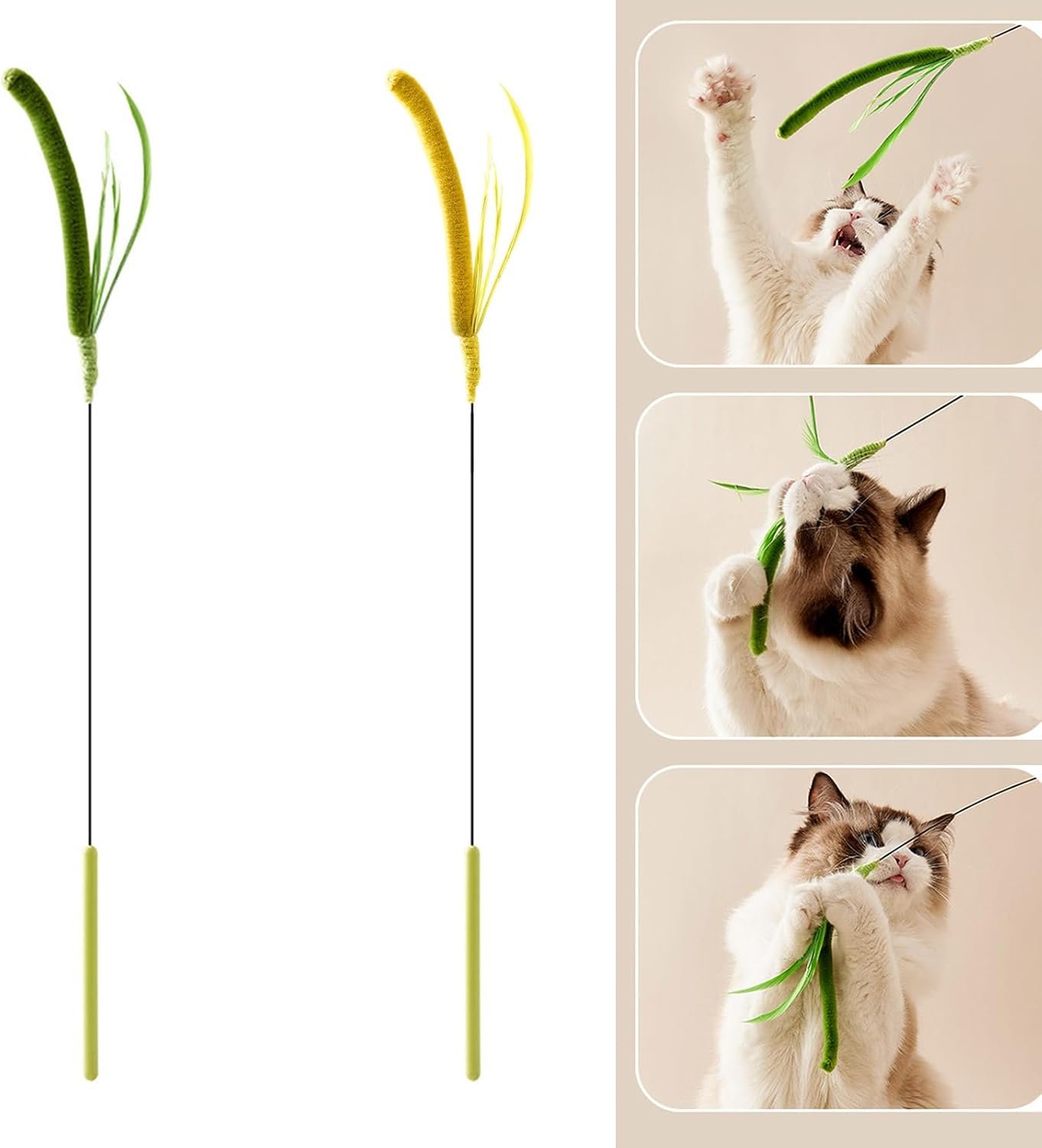 Interactive Cat Teaser Toy Wand with Furry Faux Grass for Indoor Play Grass Teaser Cat Toy Wand Stick Cat Funny Stick Cat Toy